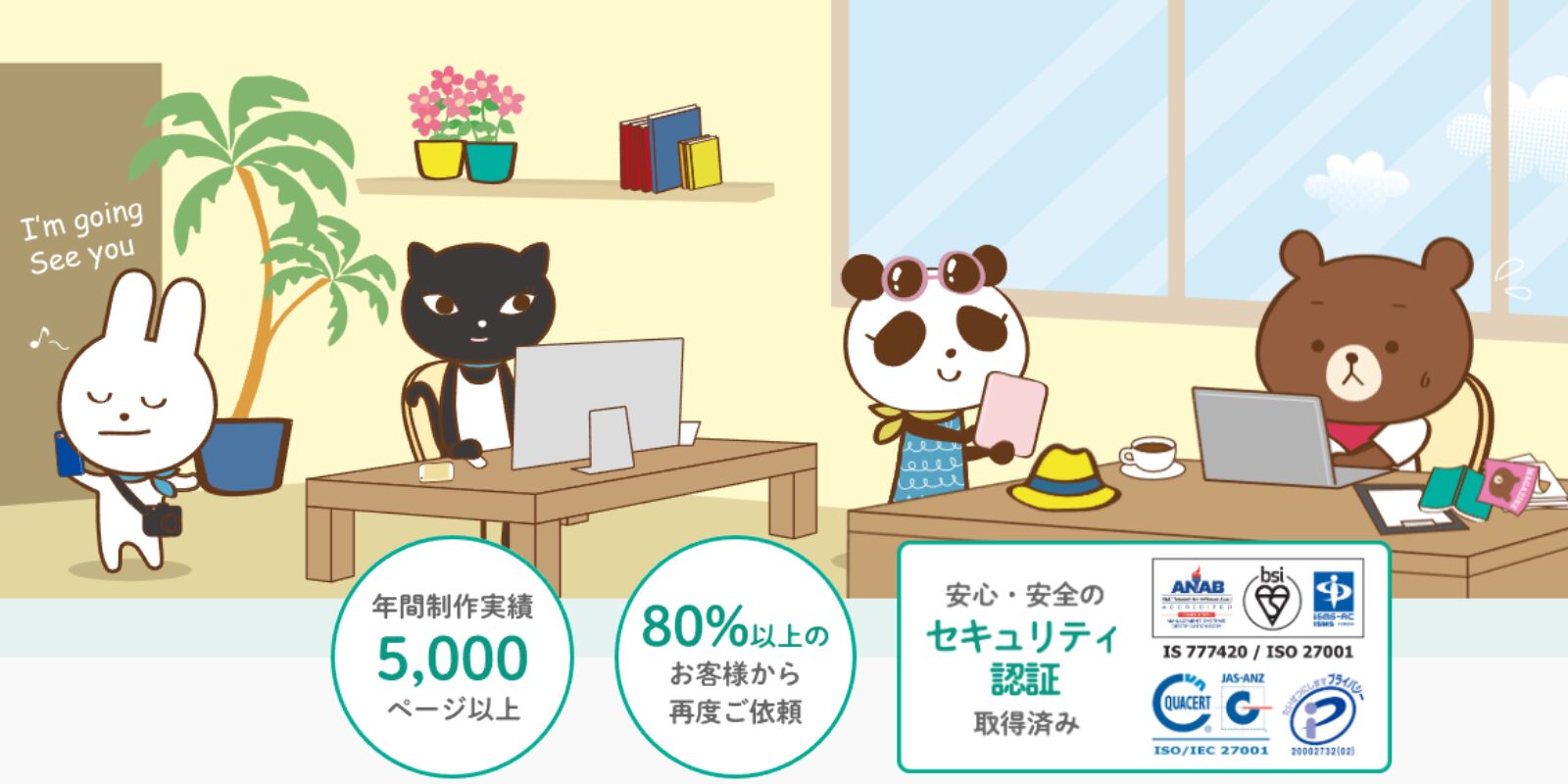 | 料金 (すべて税込) | 基本設計料:無料 HTML/CSSコーディング(~10ページ): └ PC・SP:7,000円 └ レスポンシブ:1万5,000円 |